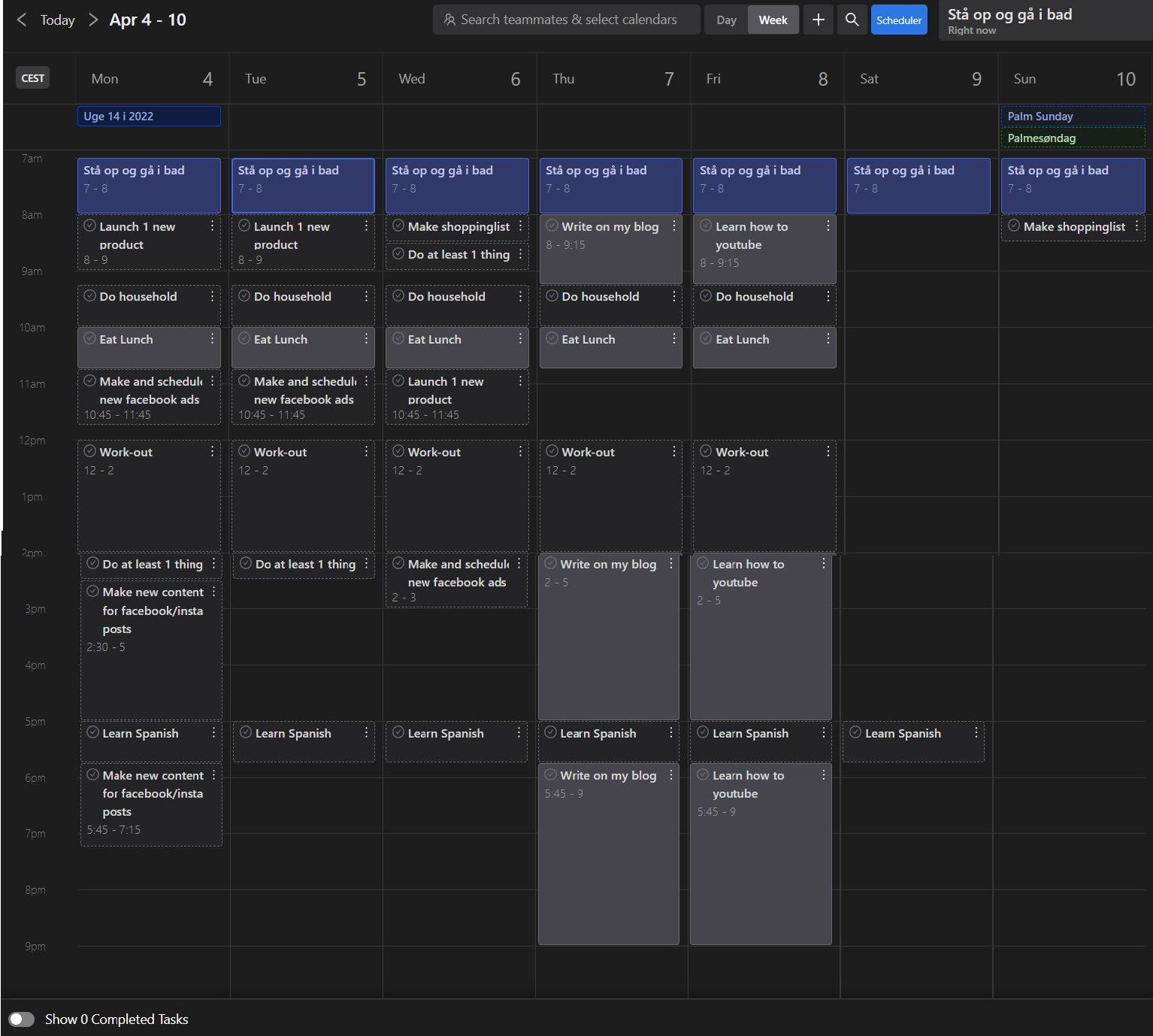Some best stages of my life have been when learning something new and challenging myself in the process. It has been a while since I stopped in school, so the "learning new stuff" part of life is not on autopilot anymore. I have to do something consciously about it. It is hard to find time to explore and learn new stuff on a busy weekday. But searching youtube, I came across the concept of "time-blocking." It means that you have to block out time during your day for specific tasks. I tried doing this a few weeks ago, but it was hard to organize every day like that, so it quickly fizzled out. However, I learned that I had a lot more time in my day if I saw it as 30-minute blocks instead of just one whole day. So this idea of time-blocking was fascinating but just required too much management. But this is where I came across Motion Calendar, which I will cover in the next chapter. All in All, I found a few things that I wanted to prioritize during my week.